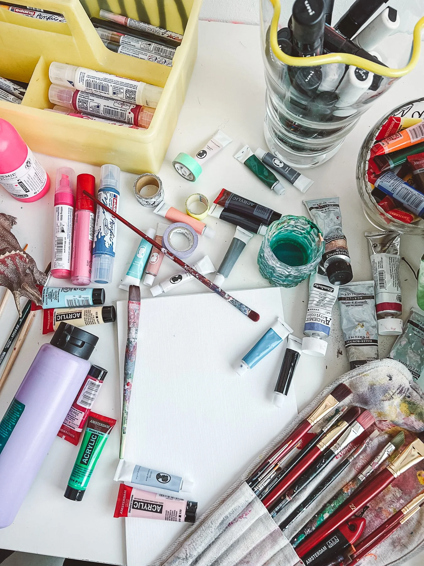 Aquarell, Acryl, Scribbeln, Travel Journaling, Collagieren, Stempeldruck oder Sprayen… unser kreatives Spektrum ist grenzenlos. Wir arbeiten mit unterschiedlichsten Materialien, kreativen Expert:innen und Kooperations-Partner:innen zusammen, um Awareness für die Kunst zu schaffen und unsere kreative Mission mit euch zu teilen. Let’s get creative in unseren Off- und Online-Workshops!